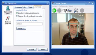 Mover la cabeza hará que el puntero del ratón también se desplace. Si te quedas quieto, eViacam lo interpretará como un clic. Hay un atajo al teclado virtual de Windows, útil para escribir texto en cualquier ventana.